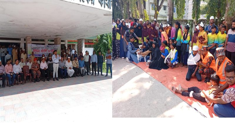 হাসান রেজাঃ সাতক্ষীরা জেলা প্রশাসকের কার্যলয়ের অফিসের নিচে ১৩/১০/২০২৫ ইং তারিখে সকাল ৯ টায় রোজ সোমাবার আন্তজার্তিক দূর্যোগ প্রশমন দিবস উযাপন করা হয় এ সময় উপস্থিত ছিল সাতক্ষীরা ফায়ার সার্ভিস টিম, সাতক্ষীরা জেলা প্রশাসক, আনসার বিজিপি, স্কুল কলেজের রোভার স্কাউট দল, সাতক্ষীরা সমাজসেবক আলহাজ্ব আবুল কালাম বাবলা সহ সাতক্ষীরা বিভিন্ন দপ্তরের অফিসারবৃন্দ। সাতক্ষীরা জেলা প্রশাসকের কার্যলয়ের নিচে সকাল ৯.০০ টায় আলোচনা হয় এসময় দূর্যোগের সময় কিভাবে বাঁচতে হবে তার দিক নিদর্শনা মুলক বকত্ব রাখেন আলহাজ্ব আবুল কালাম বাবলা সাহেব এবং অন্যন্যরা । আলোচনা ও পরামশের পর বাস্তবে কিভাবে আগুন নিভাতে হয় দূর্যোগে কবলিত মানুষকে কিভাবে সাহায্য করতে হয় তার প্রামন্য চিত্র দেখিয়ে মানুষকে দূযোর্গে ব্যবস্থাপনা হাতে কলমে শেখানো হয়। এর পর সাতক্ষীরা শহরের বিভিন্ন এলাকায় র্যালী অনুষ্ঠিত হয়ে আবার জেলা প্রশাসকের কার্যলয়ে ফিরে এসে অনুষ্ঠানের সমাপ্তি ঘোষনা করা হয়।