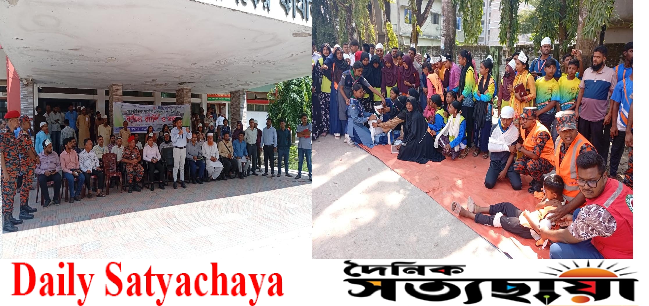 হাসান রেজাঃ সাতক্ষীরা জেলা প্রশাসকের কার্যলয়ের অফিসের নিচে ১৩/১০/২০২৫ ইং তারিখে সকাল ৯ টায় রোজ সোমাবার আন্তজার্তিক দূর্যোগ প্রশমন দিবস উযাপন করা হয় এ সময় উপস্থিত ছিল সাতক্ষীরা ফায়ার সার্ভিস টিম, সাতক্ষীরা জেলা প্রশাসক, আনসার বিজিপি, স্কুল কলেজের রোভার স্কাউট দল, সাতক্ষীরা সমাজসেবক আলহাজ্ব আবুল কালাম বাবলা সহ সাতক্ষীরা বিভিন্ন দপ্তরের অফিসারবৃন্দ। সাতক্ষীরা জেলা প্রশাসকের কার্যলয়ের নিচে সকাল ৯.০০ টায় আলোচনা হয় এসময় দূর্যোগের সময় কিভাবে বাঁচতে হবে তার দিক নিদর্শনা মুলক বকত্ব রাখেন আলহাজ্ব আবুল কালাম বাবলা সাহেব এবং অন্যন্যরা । আলোচনা ও পরামশের পর বাস্তবে কিভাবে আগুন নিভাতে হয় দূর্যোগে কবলিত মানুষকে কিভাবে সাহায্য করতে হয় তার প্রামন্য চিত্র দেখিয়ে মানুষকে দূযোর্গে ব্যবস্থাপনা হাতে কলমে শেখানো হয়। এর পর সাতক্ষীরা শহরের বিভিন্ন এলাকায় র্যালী অনুষ্ঠিত হয়ে আবার জেলা প্রশাসকের কার্যলয়ে ফিরে এসে অনুষ্ঠানের সমাপ্তি ঘোষনা করা হয়।