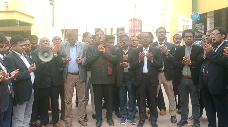সাতক্ষীরা জজকোর্ট প্রাঙ্গনে আইনজীবিদের সমাবেশ ও বিএনপির চেয়ারপার্সন বেগম খালেদা জিয়ার আশু সুস্থ্যতা কামনা করে দোয়া